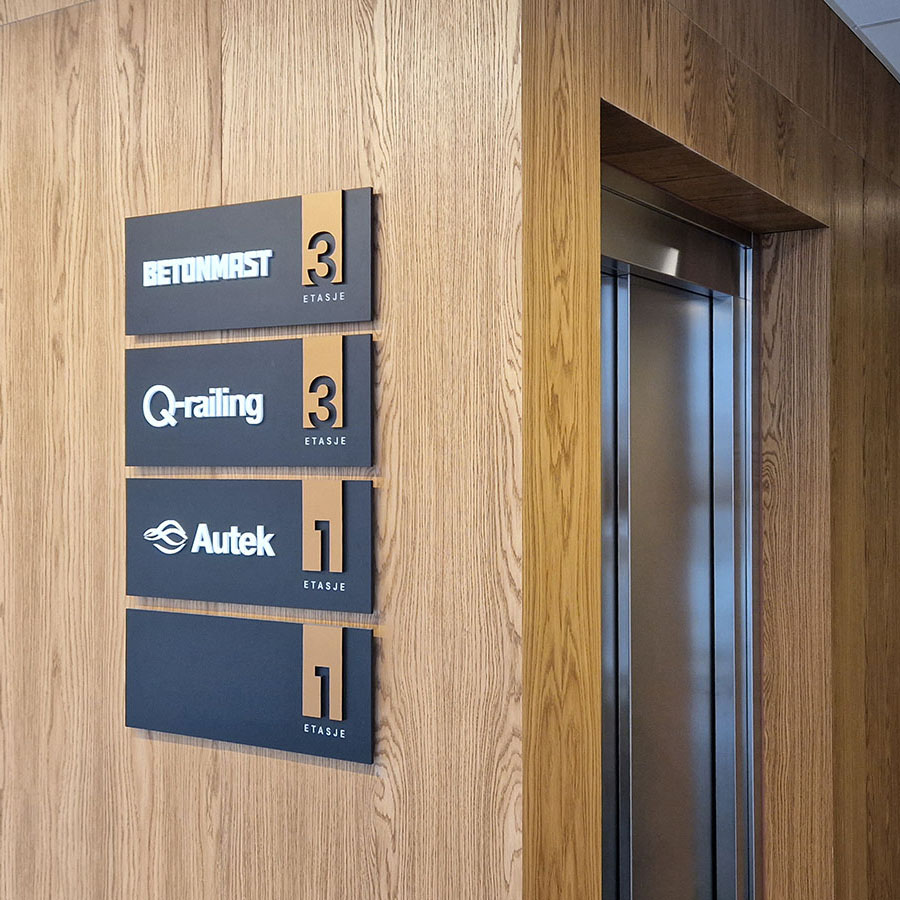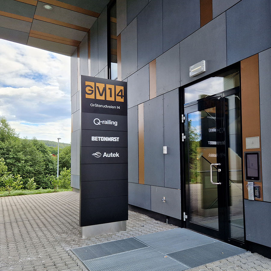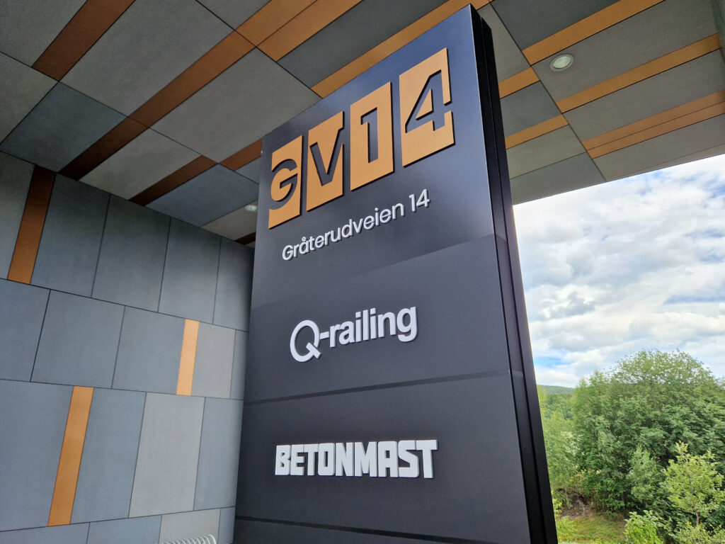I samarbeid med byggherren og DRMA arkitekter har vi designet skiltløsninger som harmonerere godt med bygget og det arkitekoniske uttrykket.